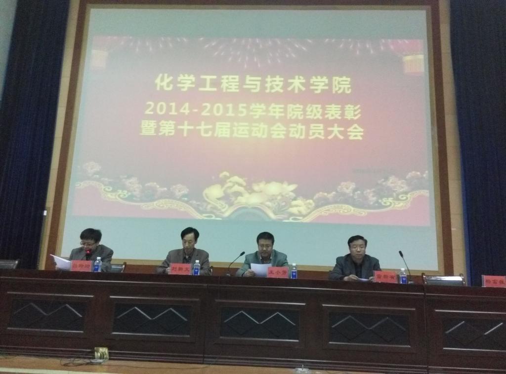 2016年4月25日19:30beat365官网在2号报告厅举行了“2014-2015学年院级表彰暨第十七届运动会动员大会”,出席此次会议的有beat365官网院领导、辅导员老师、各班班主任、班长、15级全体学生及学生会全体成员。