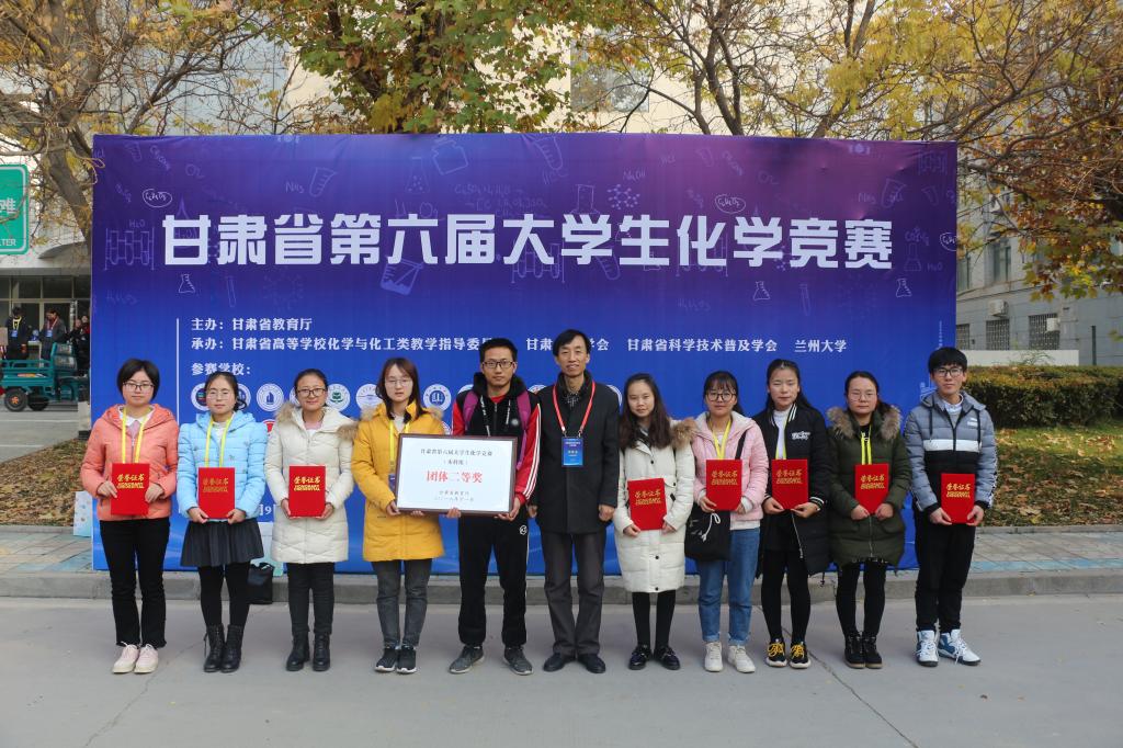 甘肃省大学生化学竞赛每年举办一次,旨在推动高校化学教学教学模式、教学内容、教学方法改革,探索培养创新型化学人才的思路、途径和方法,以提高甘肃省化学教学总体水平,现已成为省内本专业的品牌赛事及省内各高校间交流合作、展示风采的平台。beat365官网此次竞赛中获奖人数及获奖等级取得突破,反应出beat365官网重视教学质量,不断提高学生综合素质及创新能力的培养。