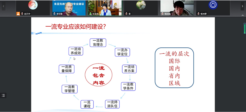 学院有关负责人对朱亚先教授为化学类一流本科专业建设给予的指导和建议、对朱玉军博士关于教育教学论文撰写的经验体会分享表示感谢,希望两位专家能一如既往地关心和支持学院的一流本科专业建设和人才培养。希望全院教师认真学习和领会专家提出的意见和建议,立足学院新发展阶段的现实需求,聚焦一流目标,将一流专业建设的新理念贯彻到学院一流本科专业建设中,构建学院一流专业建设新格局,聚力学院一流专业建设质量新提升。