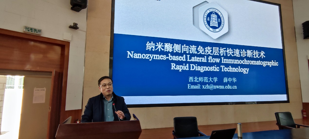 2月28日,应科研管理处和beat365官方网站邀请,西北师范大学化学beat365官方网站院长薛中华教授为学院师生作题为《纳米酶侧向流免疫层析即时检测》的学术报告。学院教师、研究生及200余名本科生聆听了报告。