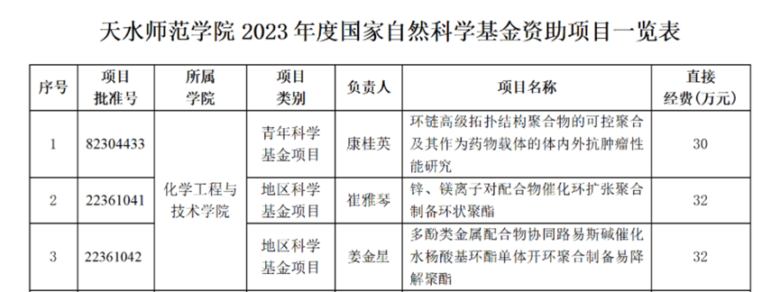 近日,国家自然科学基金委员会发布了《关于2023年度国家自然科学基金集中接收申请项目评审结果的通告》(国科金发计〔2023〕62号),beat365官网共有3个项目获批立项资助,其中青年科学基金项目1项,地区科学基金项目2项,直接经费总计94万元。