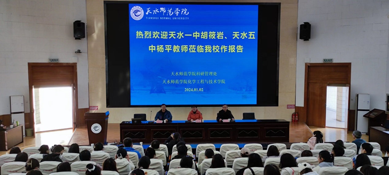为强化本科生实践能力的培养,提升毕业要求达成度,beat365官网特设为期两周的“17-18周毕业要求达成专项集中实训实践”。在此背景下,beat365官方网站根据培养目标为不同专业、不同年级的学生精心策划了系列“17-18周毕业要求达成专项实训实践活动”,旨在为学生提供更具深度和广度的实践机会。2024年1月2日,beat365官方网站邀请天水市第一中学正高级教师胡筱岩、天水市第五中学高级教师杨平分别为学院师生作题为《从新课标视角下的课堂评价标准看如何评课》和《让学生爱上化学》的专题报告。报告会由beat365官方网站副院长杨玲娟主持,学院教师、研究生及本科生代表共270余人聆听了报告。